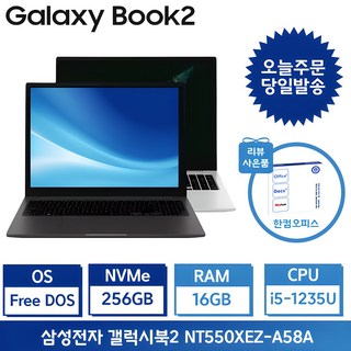 삼성전자 갤럭시북2 i5 15.6인치 사무용 인강용 업무용 학생용노트북 / 사은품+포토리뷰 한컴증정, 그라파이트, NT550XEZ-A58A, 코어i5, 256GB, 16GB, Free DOS
