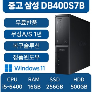 삼성중고컴퓨터 슬림 인텔 6세대 사무용 컴퓨터 주식용컴퓨터, DB400S7B, WIN11 Pro, 256GB, 16GB, 블랙