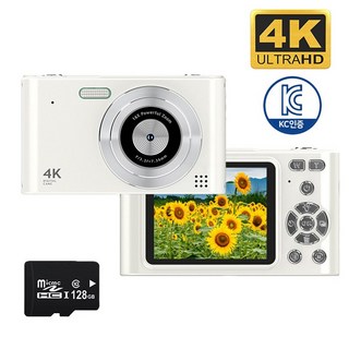 RUN기술 하이엔드 미니 디지털 카메라+64G메모리카드, 화이트
