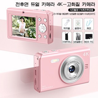 PYHO 디지털카메라 4800W 픽셀 고화질 셀카 소형 휴대용 빈티지카메라, 핑크색