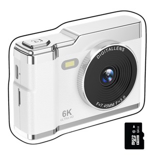 RUN기술 6400W 픽셀 하이엔드 카메라 WIFI 디카+64G 메모리카드, 화이트