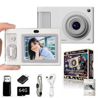 YAPOGI 레트로 미니 디지털 카메라 4800W 픽셀 HD 비디오 촬영 스마트한 손떨림 방지+64G메모리카드+카드 리더기, 흰색