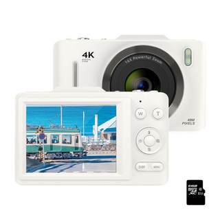 RUNHome 4800w 레트로 미니 디지털 카메라 여행용 인생+64G메모리카드, 화이트