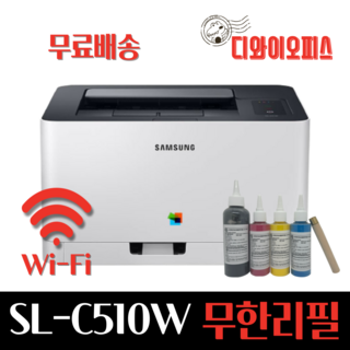 삼성 SL-C513 무한프린터 컬러레이저프린터 [무한토너+리필파우더 포함] 가정용 사무용 프린트기, SL-C513W 와이파이 무한프린터 [풀세트]