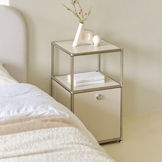 미니 모듈 침대 옆 협탁 사이드 테이블, 2단, 1개, 실버