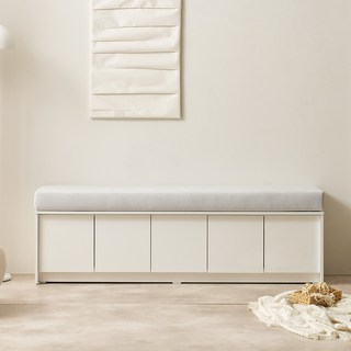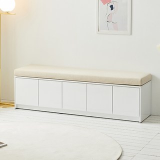 나무뜰 코젯 책장형/수납형 인테리어 벤치 소파, 코젯 패브릭 1600 수납 벤치 소파 SRS020C, 화이트-연베이지 쿠션