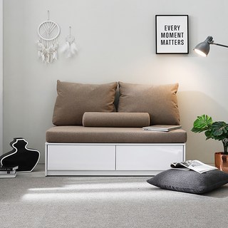 나무뜰 코젯 책장형/수납형 인테리어 벤치 소파, 코젯 패브릭 2인 쿠션 수납 벤치 소파 SRS007C, 화이트-연브라운 쿠션