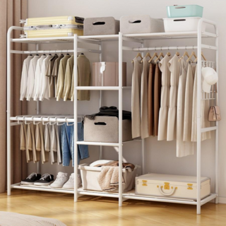 kurua 철제 고급 이동식 스탠드 옷걸이 행거, 화이트