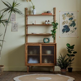 장미맨숀 델마 원목 선반 유리수납장 (내추럴)