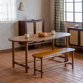 장미맨숀 로이 타원형 원목 다이닝 테이블 1800 식탁세트 (의자형/벤치형), 세트02(벤치2개)