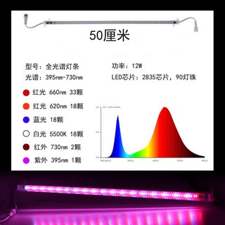 스펙트럼 성장 식물 플러그 IR 수경재배 온실용 재배용 밝은 야채용 LED 온실 lamp, 전체 스펙트럼 50cm 1개입 220V
