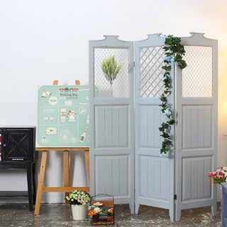 디모토 유럽 빈티지 프렌치하임 철망 3단 파티션 원목 인테리어 가림막, 스카이그레이
