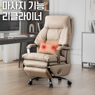 레퓰리 컴퓨터 의자 중역의자 침대형 리클라이너 오피스 사무용 발받침대 고급가죽, 베이지
