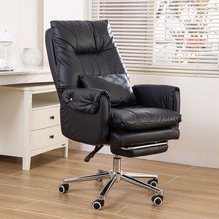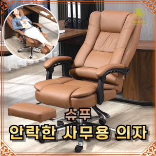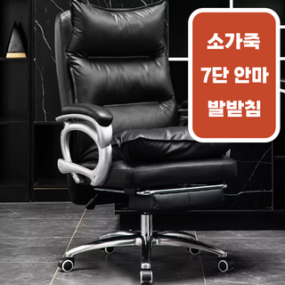 슈푸 안락한 사무용 의자 중역 가죽 보스 컴퓨터 소파 팔걸이 발판 사장님 체어, 블랙+발판