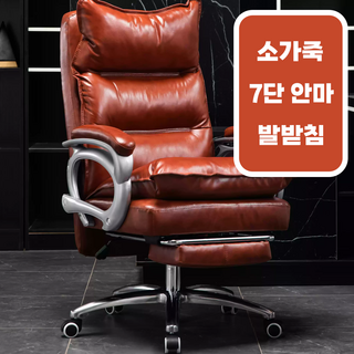MEIRA 소가죽 중역의자 안마기능 발판 포함 리틀라이너 모드 고급 사무용 사장님 회장님 임원 간부, 브라운