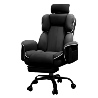 레퓰리 컴퓨터 의자 중역의자 침대형 리클라이너 오피스 사무용 발받침대 고급가죽, 블랙