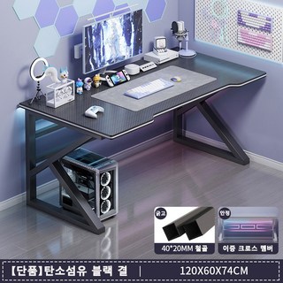 1인용 카본 텍스쳐 강철 컴퓨터 게이밍 책상 서재 공부 사무용, 블랙