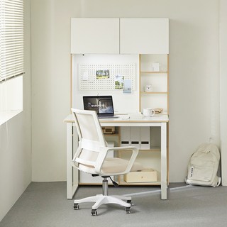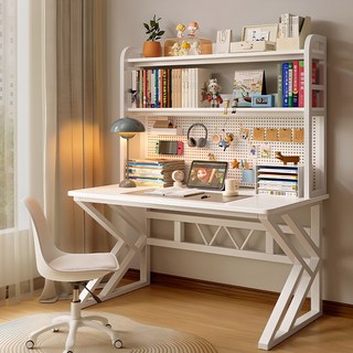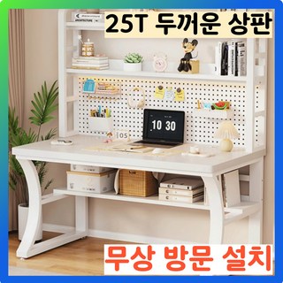 선반 컴퓨터 책상 올인원 컴퓨터책상 게이밍책상 사무용책상 서재책상 타공판책상 브라운/화이트 1인용 2인용 테이블 사이즈 120cm*60cm 고도 165cm, 화이트