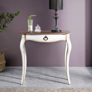 파로마 아덴힐 1단 엔틱 원형다리 슬림서랍 콘솔 앤 사이드테이블, 크림화이트