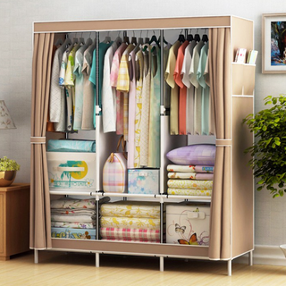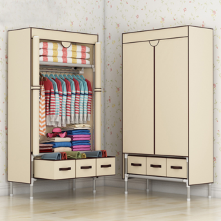 미노네 가벽 비키니 이불장 조립식 옷장 튼튼한 행거 이불 수납 프린팅 간이 옷장 기숙사 베란다 수납장, 심플 베이지