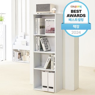 KURUA 거실수납책장 길이조절 회전책장 책꽂이 4단, 1단, 흰색