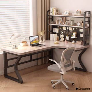 월로덴VORDERN L자 코너형 사무용 공부방 컴퓨터 수납 선반 테이블 게이밍 책상, 화이트