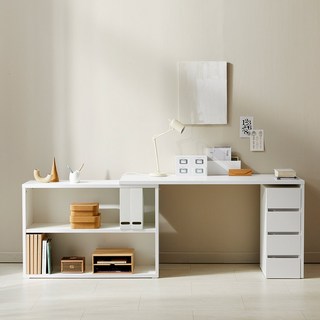 [베스트리빙] 아이비 와이드 데스크 코너형 책상/ㄱ자 책상 1400/1600 일자형책상 변환 책장위치 변경 (서랍포함)