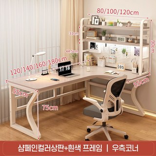 리사 기역자 코너 책상 ㄱ자형 L자형 일자형책상 사무용 책상 학생 책상 컴퓨터책상, 180X80X75, 우측코너+샴페인+흰색
