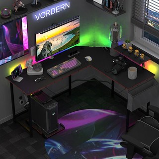 월로덴VORDERN L자형 코너형 컴퓨터 게이밍 책상, 블랙