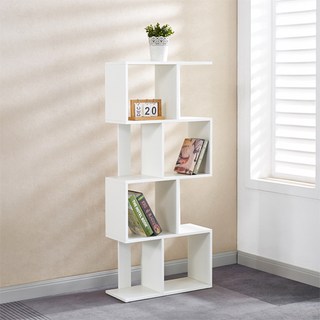 BILIMO 단순성 책꽂이 퍼즐 책장 화이트 선반 전면 파티션 4단
