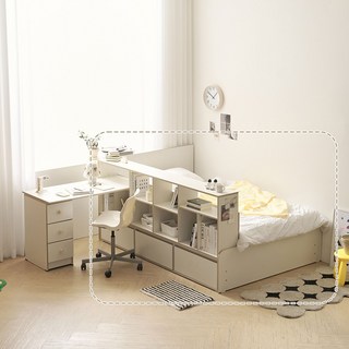 사사가구 메가 슈퍼싱글 서랍형 수납침대 파티션책장 포함, 오크