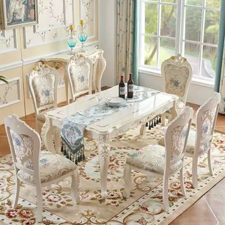 엔틱 식탁 세트 거실 주방 다이닝 테이블 4인용식탁, 1.63m 식탁 아이보리 골드 YH