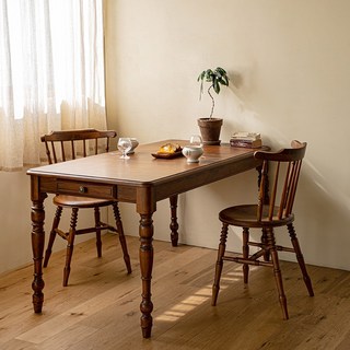 디킨 엔틱 고무나무 원목 사각 1400 식탁 테이블 세트, 2인 식탁세트(식탁+의자2), 레딩 체어