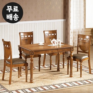 유캐슬 루앙 엔틱 4인 원목 식탁세트(테이블+의자4), 단품