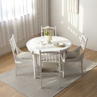 유캐슬 화이트엔틱 마호가니 원목 아벨리아 대리석 4인식탁세트, 단품