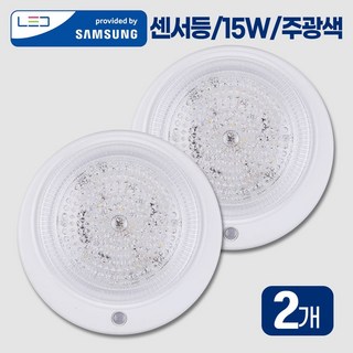 LED 원형 현관 계단 복도 베란다 15W 건식 센서등, 주광색(흰색빛), 2개