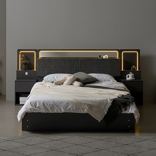 상일리베가구 호텔 로이스 LED 멀티수납 침대+본넬 매트리스 세트 SSQK, 그레이