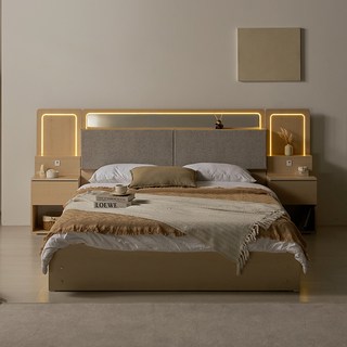 [삼익가구]러버 LED 4단 수납 원목 침대(YS 파워 본넬스프링 매트리스-퀸), 내추럴