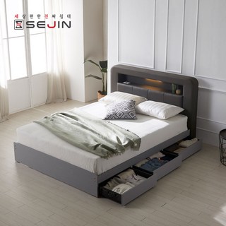 세진침대 100%국내생산 바르타 LED 서랍침대+매트리스 세트, 모카그레이, 본넬매트리스