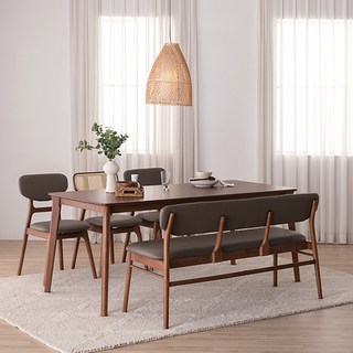 베스트리빙 고무나무 통원목 츠카 제니 1600 6인 식탁 테이블세트/의자3개+일반형벤치의자 2colors, 월넛