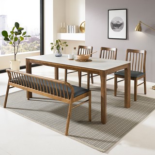 도모 디바 6인용 고무나무 통세라믹 식탁 세트 (벤치 + 의자 3개), 6인 테이블만