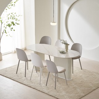 [삼익가구]순수 세라믹 타원형 1800 식탁 세트(의자6개), 화이트6