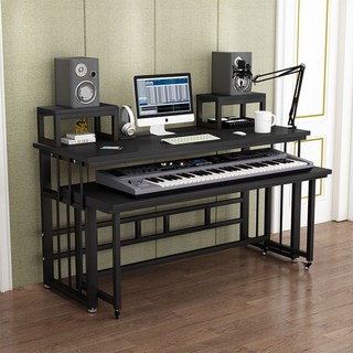 작곡 미디 피아노 책상 전자 오르간 테이블 데스크 건반 책꽂이 포함, 블랙프레임 블랙 가로 140폭 137, 조립하다.