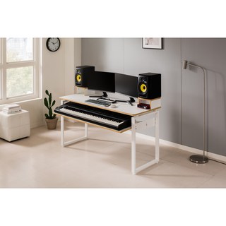 KCS 미디데스크 미디테이블 건반 전자피아노 책상 음악 작업, 화이트 프레임+화이트