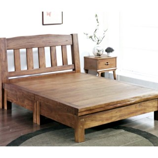 잉글랜더 엘름 로즈우드 원목 평상형 침대 프레임 단품 방문설치, 내츄럴브라운