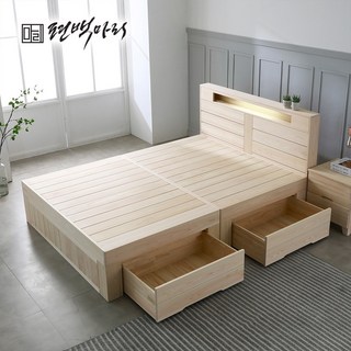 미엔우드 천연 편백나무 레드파인 통원목 침대 프레임 선반 수납 평상 3단 LED 매트리스 싱글 슈퍼싱글 더블 퀸 킹, 완조립 편백침대 수납헤드형, 천연원목