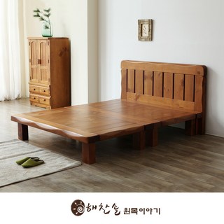 해찬솔 소나무 통원목 침대 퀸사이즈_1600원목침대평상침대, 내추럴브라운