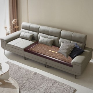 온열소파 코모 4인 천연 면피 소가죽 금강약돌세라믹 돌소파 카우치, 라이트 그레이